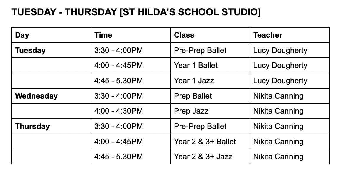 St Hilda's School Dance Program